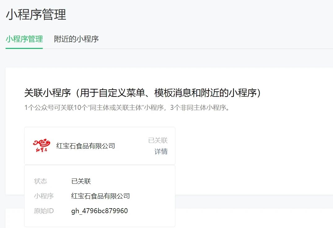 公司名为“淄博红宝石蛋糕”的公众号,关联了“红宝石食品有限公司”的小程序,小程序ID:gh_4796bc879960,