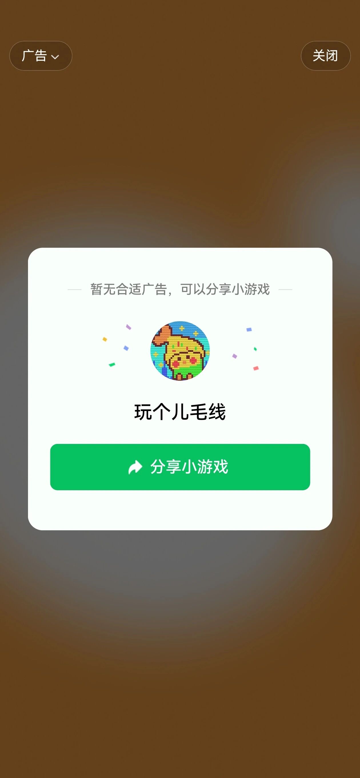 小小程序游戏总提示暂无合适广告!怎么解决?游戏玩的关卡都很高了,看不了广告,总不能一直分享!