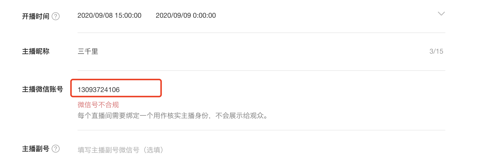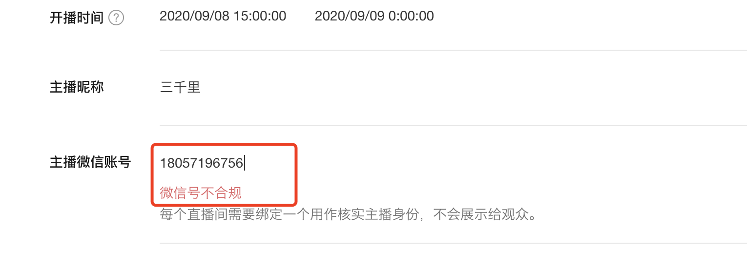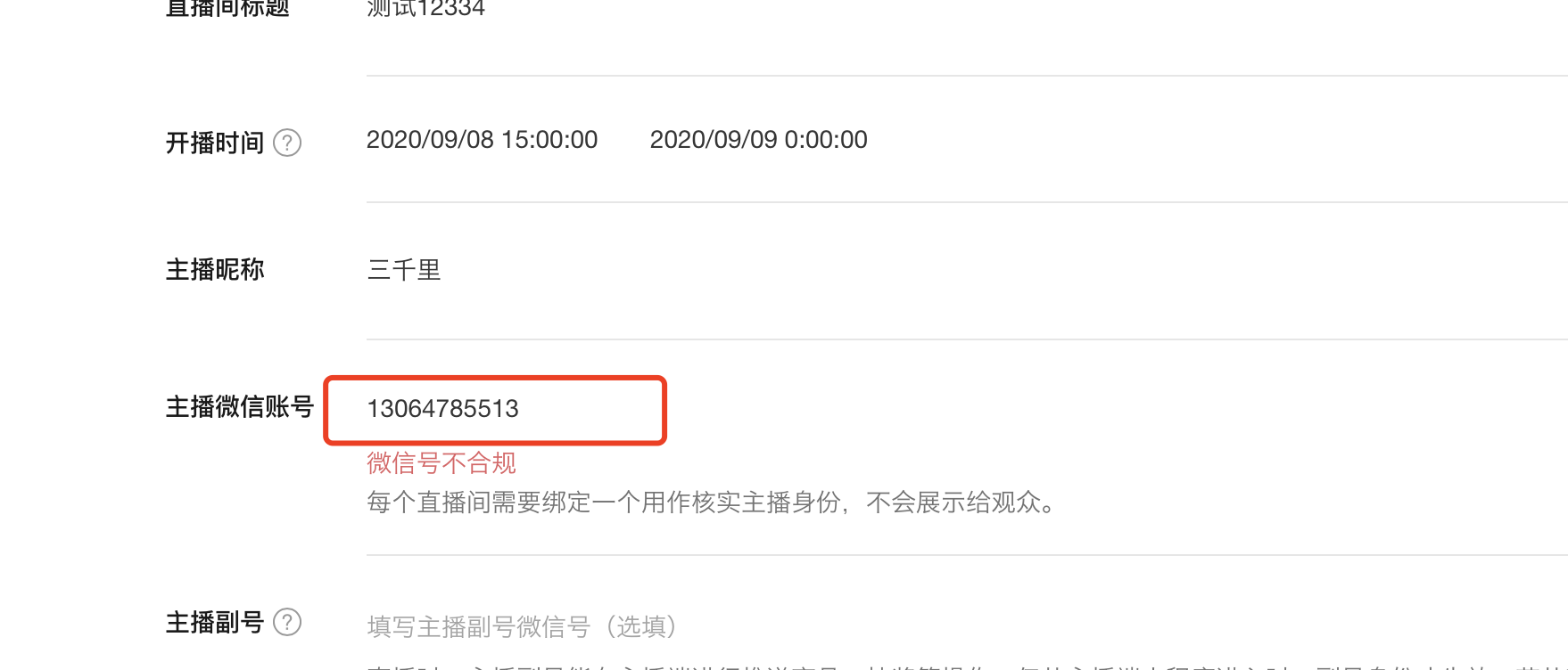 小程序直播间添加时,为什么主播微信账号一直提示不合规,已经换了3个微信号,微信号“13093724106、18057196756、13064785513”