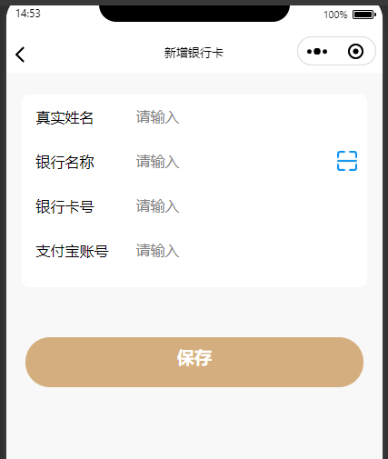 业务需求增加一个用户手动输入一下支付宝账号就可以,小程序是类似回收黄金的业务,用于后台进行打款,现在审核过不了