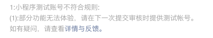 除了提供测试账号之外,还需要提供其他信息吗?比如说绑定你们审核人员为体验者之类的?请求官方人员回答~~~急急急,因为我想在春节前完成审核,万谢~~~