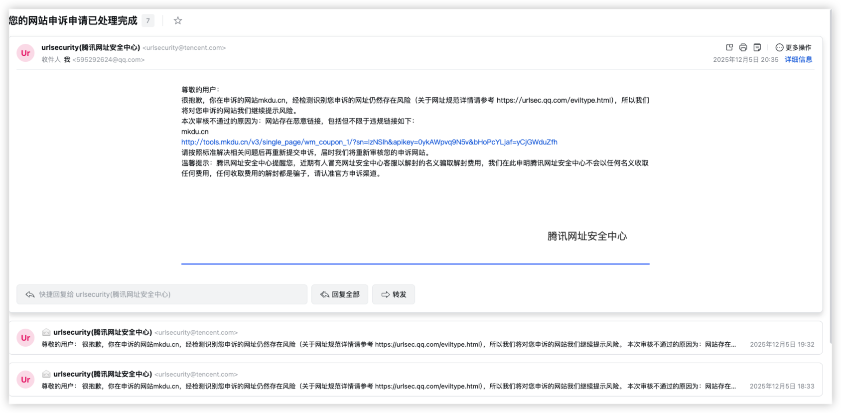你好,经核实,域名【mkdu.cn】下的链接【https://xyxn.mkdu.cn/h5/#/618/1/54238/main】的内容违反《微信外部链接内容管理规范》的第3.2条“恶意对抗类内容”,属于严重违规,无法恢复微信内直接访问的服务。