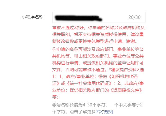 建议用政府的资质注册,或者把小程序的主体迁移为政府主体。