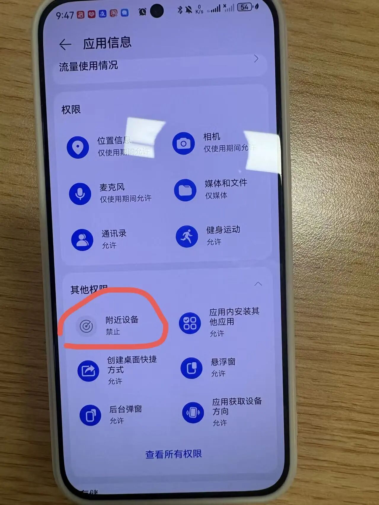 微信应用内部-权限管理(位置信息)-其他权限(附近设备打开)