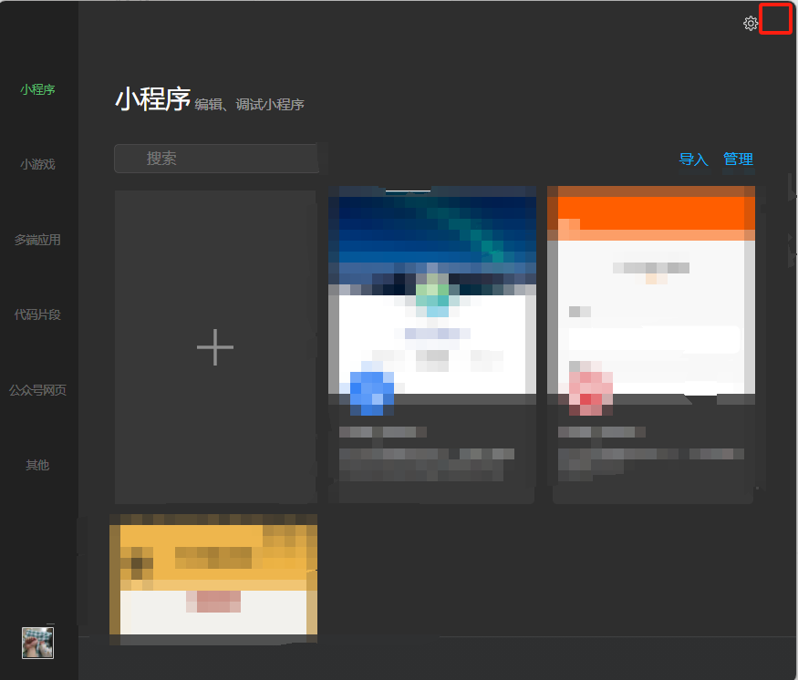 图1,不知道是什么原因,小程序项目列表页面,右上角的关闭按钮消失不见,能够点击但图标看不见。