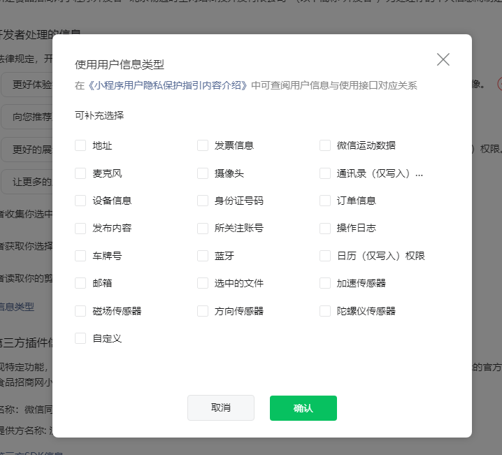 截图看下你的小程序用户隐私保护指引配置了什么?
