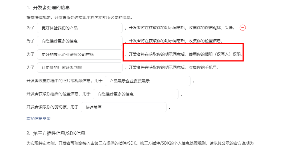 第三方服务商:https://developers.weixin.qq.com/doc/oplatform/openApi/OpenApiDoc/miniprogram-management/privacy-management/setPrivacySetting.html