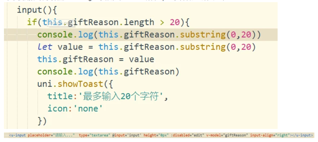 然后我又给它添加一个动态的maxLength字段,当超过20字符时截取且添加一个maxlength = 20的属性,少于20个字符时,maxlength = -1,这样的话好像解决了,但是偶尔又会出现最后一个字符只能打一个英文的问题。