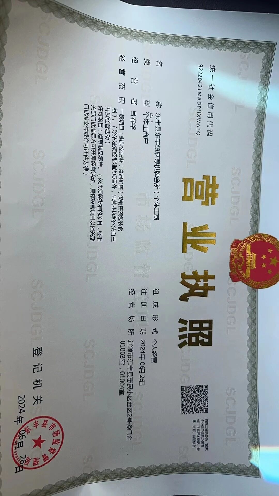 主体名称:东丰县东丰镇麻尊棋牌会所(个体工商户)