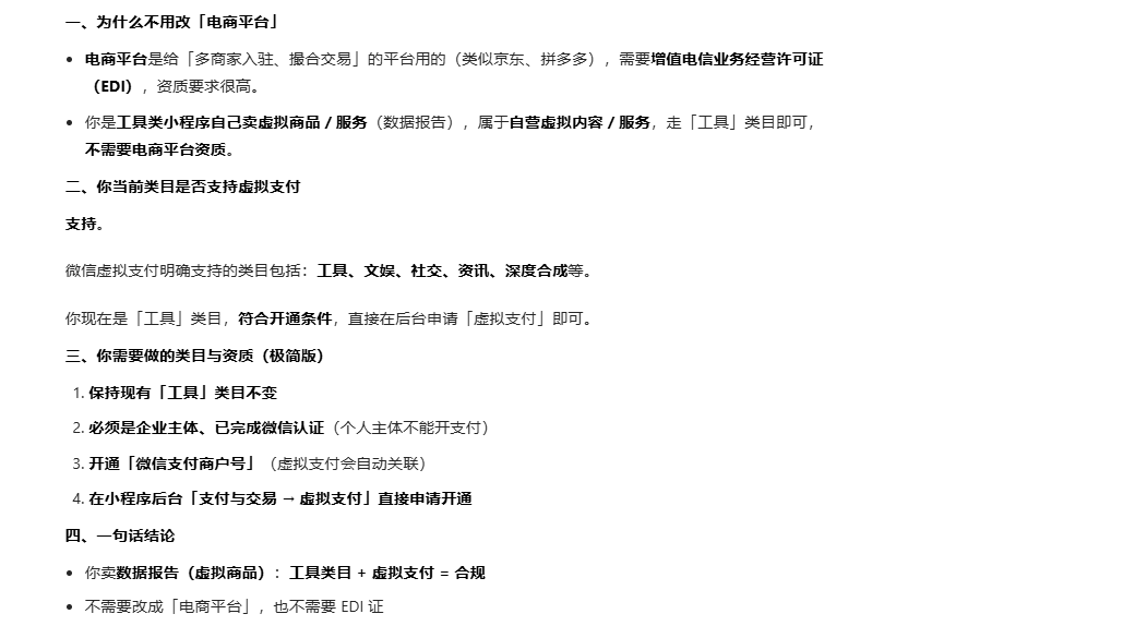 我现在的微信小程序的类目是属于工具,如果要在现在的小程序新增虚拟支付流程,需要新增将小程序的主营类目更改到【电商平台】吗?