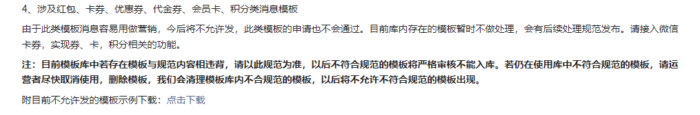 你好,模板消息运营规范https://developers.weixin.qq.com/doc/offiaccount/Message_Management/Template_Message_Operation_Specifications.html