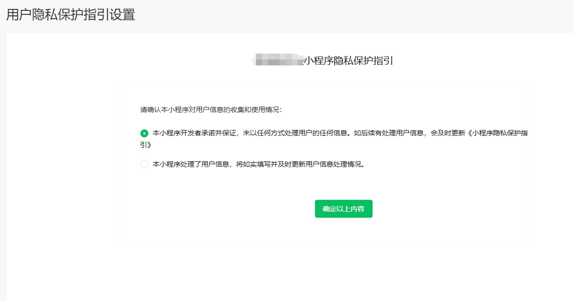 你好,设置模块的【用户隐私保护指引】更新的是现网版本,核实你的小程序还未发布过,即你小程序目前还没有现网版本【用户隐私保护指引】,建议发版后尽快完善【用户隐私保护指引】