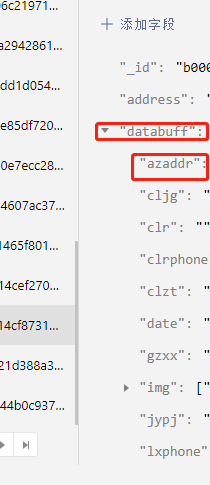 比如云数据库中一个集合含有databuff对象,其含有字段azddr