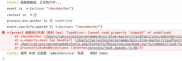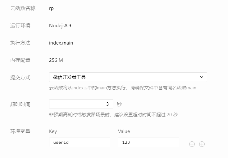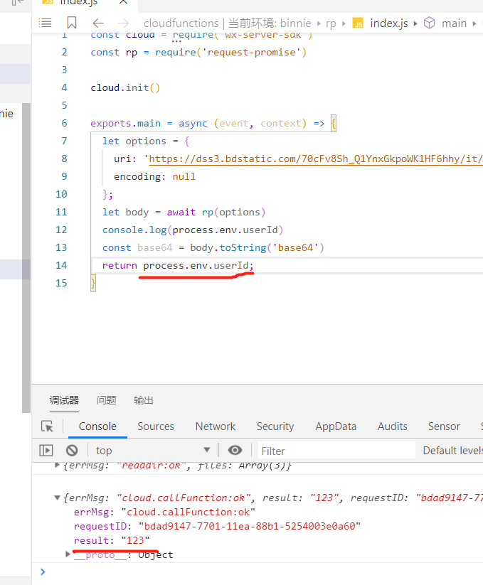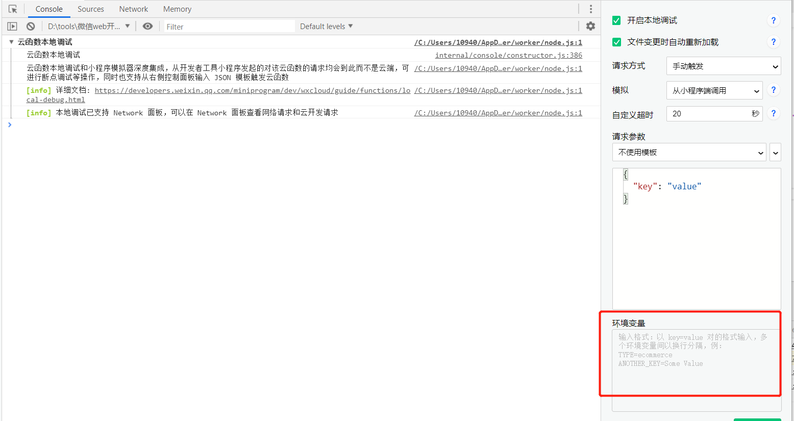 原因就是楼上大神回答的那样,本地调试是不能从云函数配置的环境变量中取值的,只能从IDE右下角的输入框配置