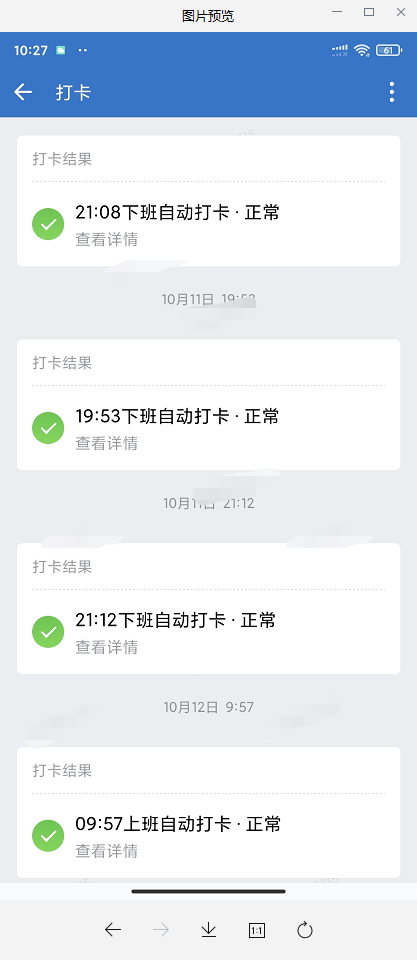 这是自动打卡返回的(快处理,天天来问我是不是打卡没成功,是不是公司监控了他们的手机……)