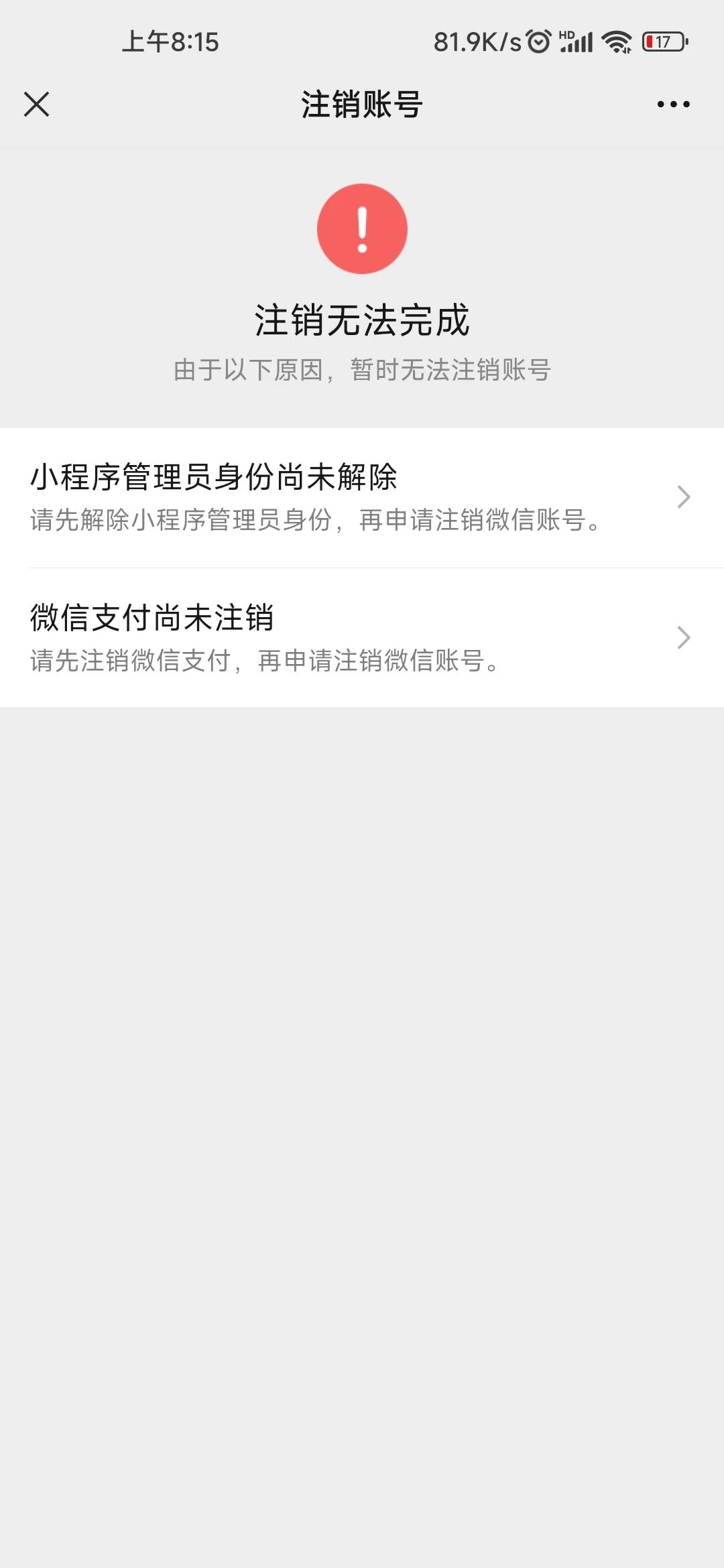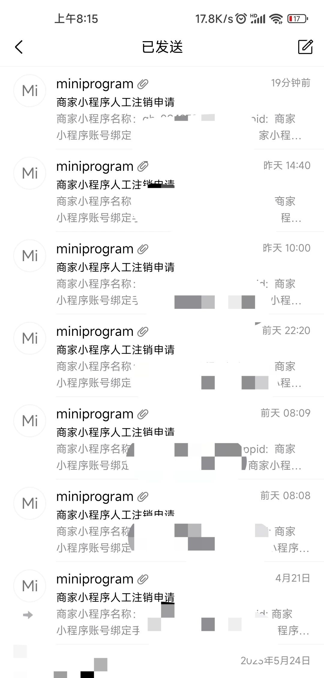 我需要注销微信,但是由于小程序管理员身份尚未解除导致无法注销,并且无法找回小程序账号,发邮件人工注销也发了很多次了没有回应。怎么处理?我也不记得我注册过小程序啊