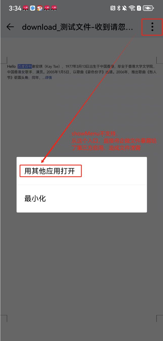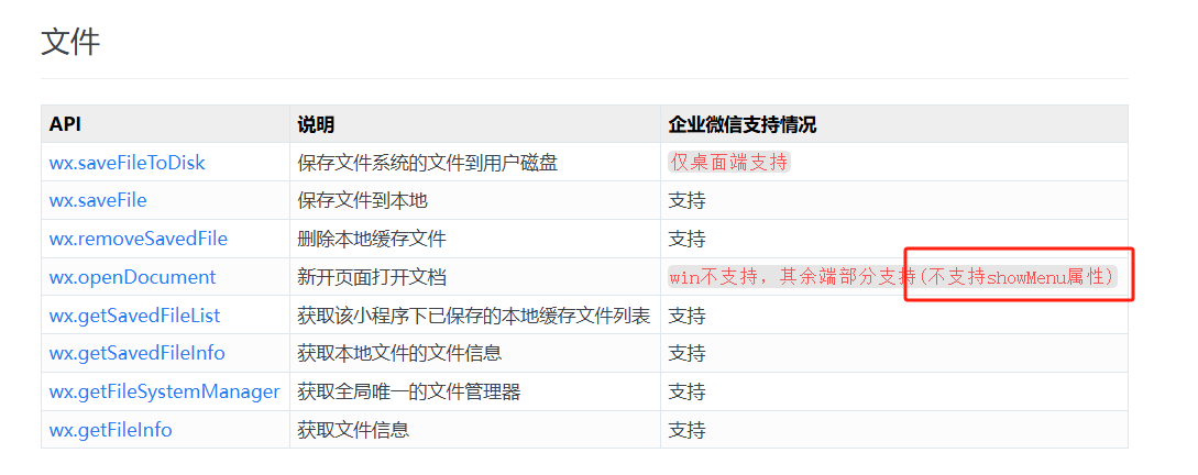 此属性不支持,可以通过其他应用打开企微文件(相当于直接将文件暴露给了第三方应用),严重影响文件安全!