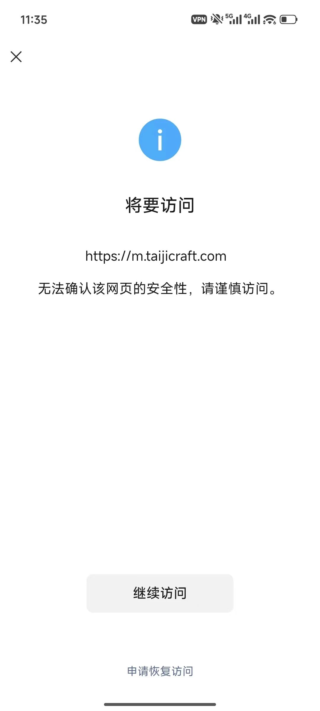 你好,经审核,域名【taijicraft.com】下的链接【https://m.taijicraft.com/】的内容存在违反《微信外部链接内容管理规范》的第2.1条“诱导分享类内容”,请对相关内容修改后进行申诉;申诉方式可点击停止访问页底部入口进行操作,我们会在三个工作日处理,请耐心等待。