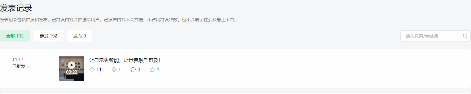 我刚才微信公众号也发了一个视频,也点击勾选了“同步发表视频号” ,我一开始在视频号怎么没有看到同步的视频,过来8分钟,再打开就看到了。