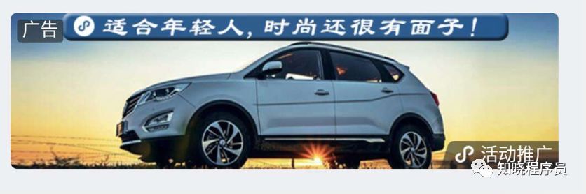 小程序类型广告,点击整个图片,会直接进入小程序。此广告右下角会有个小程序的logo+“活动推广”四个字~