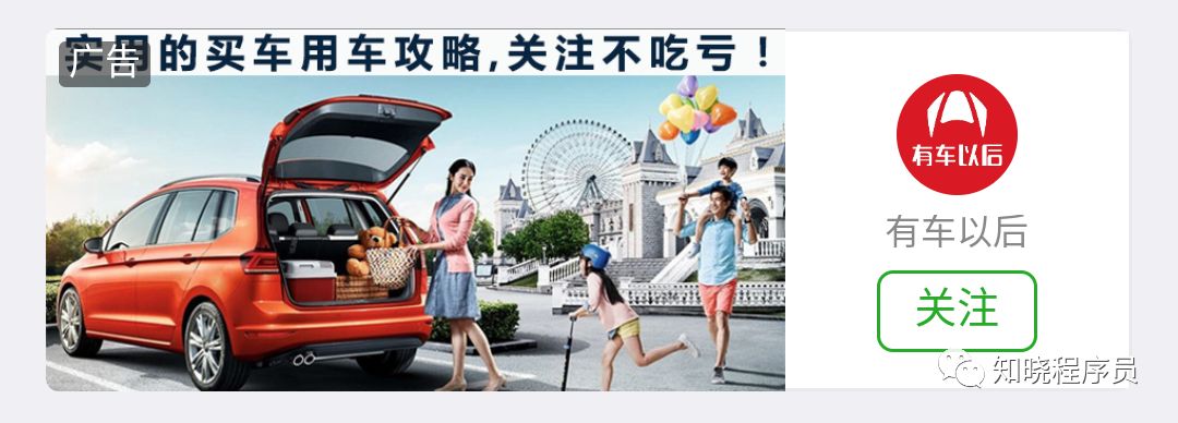 公众号类型广告,点击左边图片部分,直接进入公众号历史文章,点击右侧的“关注”按钮,可以直接关注此公众号!