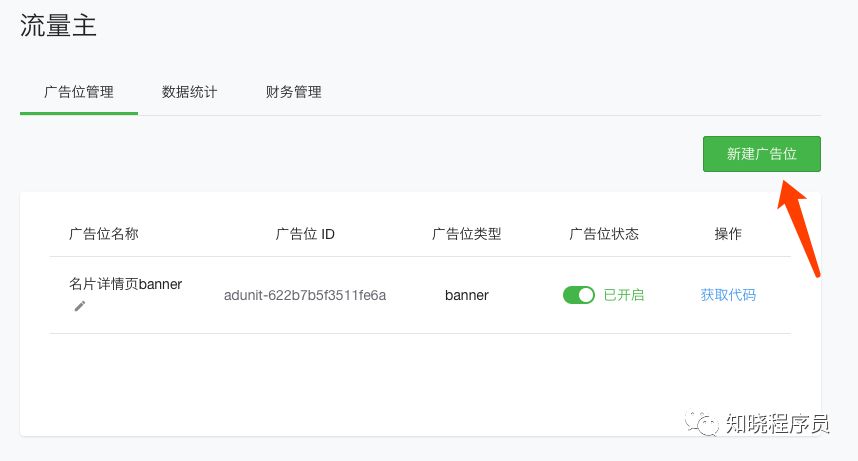 2、在控制台“流量主”面版,新建广告位