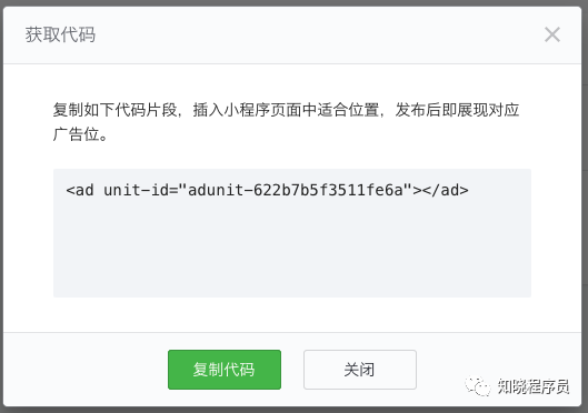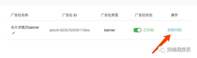 4、获取广告代码,插入到小程序代码中