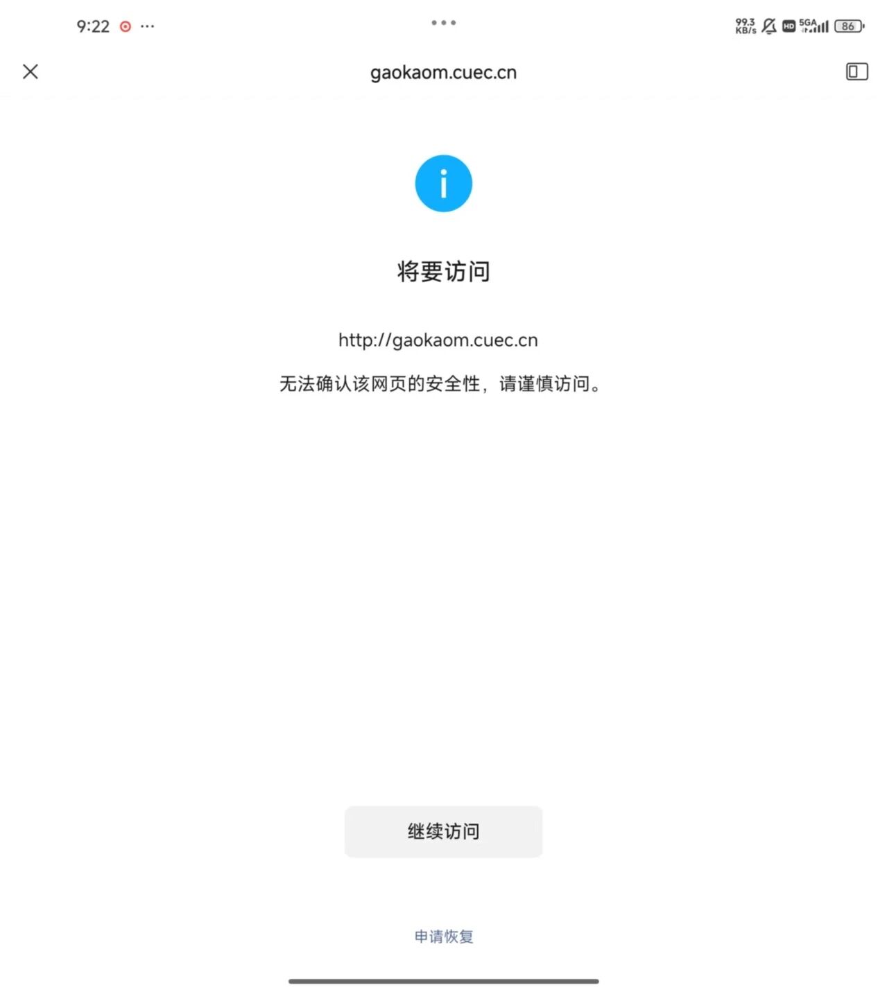 您好,域名cuec.cn在阿里云注册并完成备案,浏览器访问正常,我是网站开发者,访问时间如图2025/5/18,微信识别二维码,访问网站出现“无法确认该网页的安全性,请谨慎访问 。”经检查网页里没有不安全的内容,请核实后帮忙解除拦截,谢谢!
