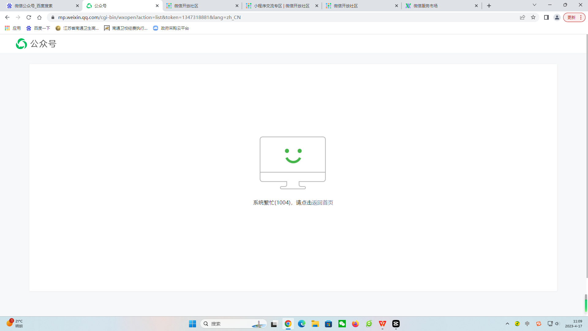 点开小程序管理 就会显示系统繁忙,请稍后再试(1004)