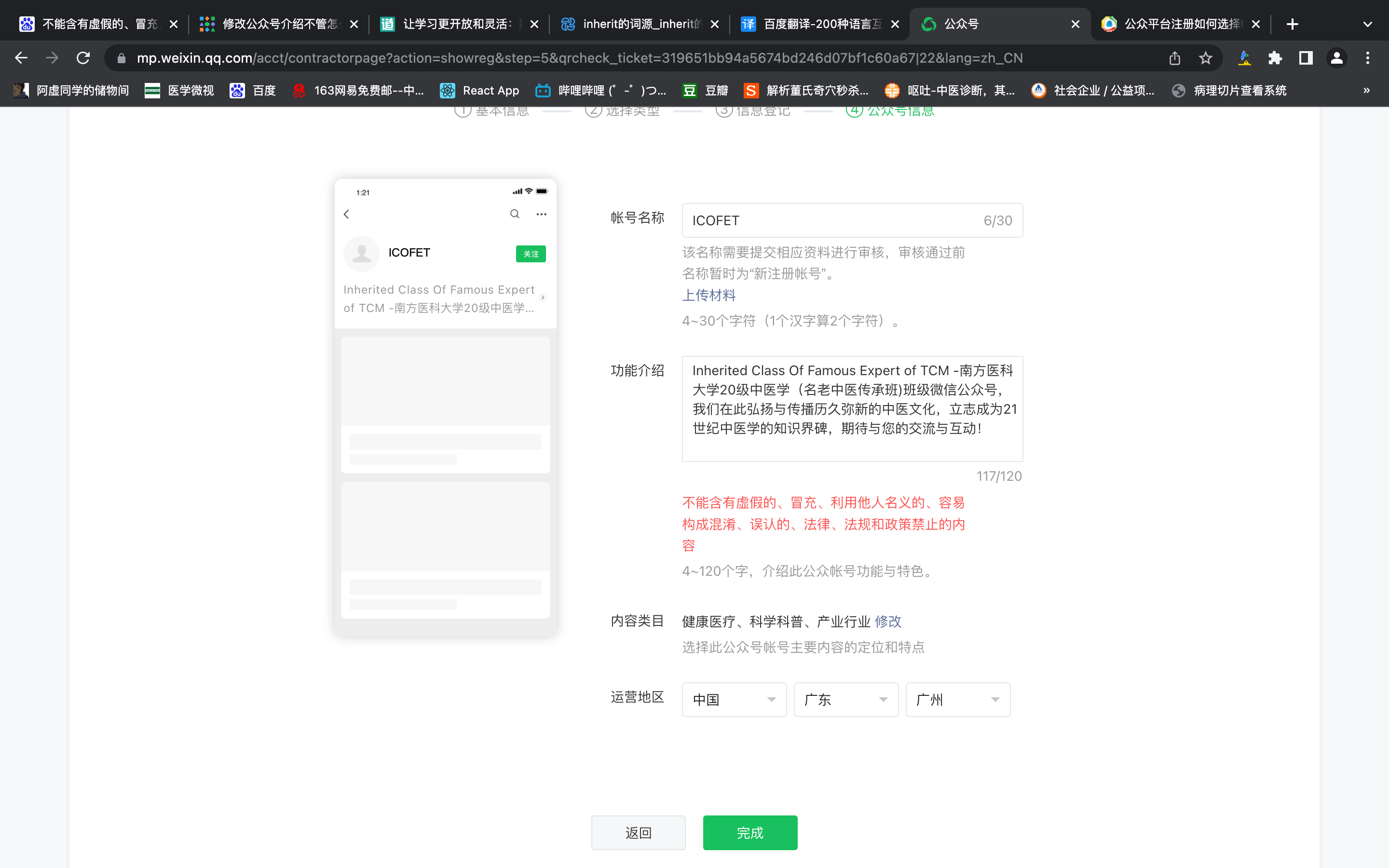 2、功能介绍为何不符合规定,个人认为此班级公众号可能与班级的团委公众号名字有重叠?