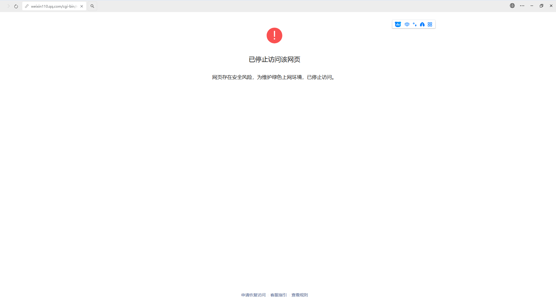 你好,经审核,域名【chengmenghudong.cn】下的链接【https://ke6xvz8qpvyr-2sjr.xls.chengmenghudong.cn/shop/wap/#/custom/index?preview_template_id=4406&preview_page_id=20172&preview_template_type=1&preview_diy_poster_id=473411】的内容存在违反《微信外部链接内容管理规范》的第2.6条“欺诈类内容”,暂无法恢复微信内直接访问。