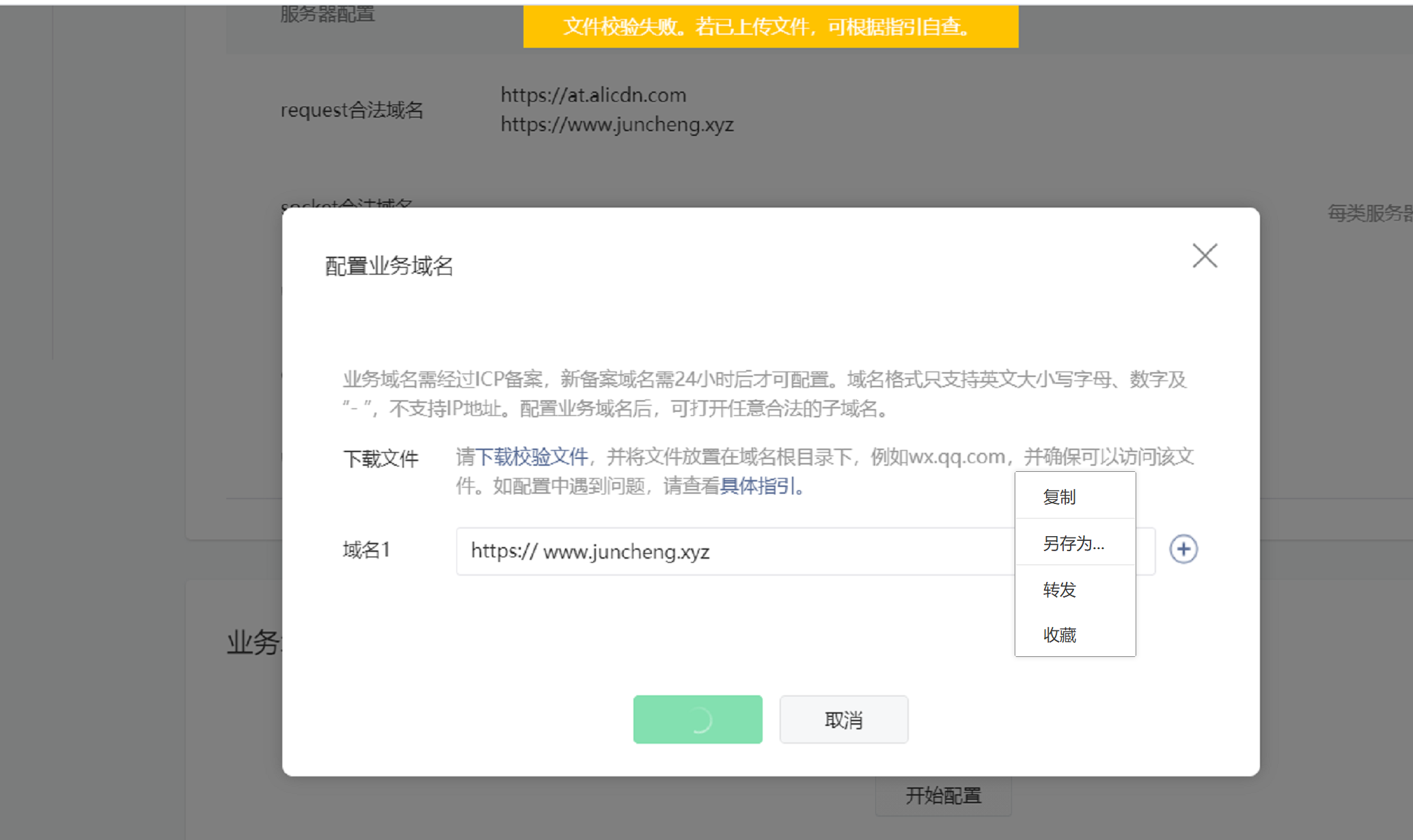 复现场景:添加业务域名https://www.juncheng.xyz时,提示校验文件错误。如下: