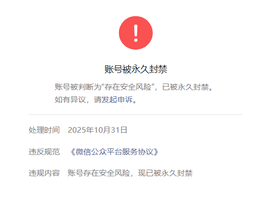 是刚注册申请的服务号,还没有投入使用就被封禁了,现在不知道是哪里违规了,也不知道怎么对应问题进行申述?希望官方能给出被封禁的原因,我好进行针对性的申述处理
