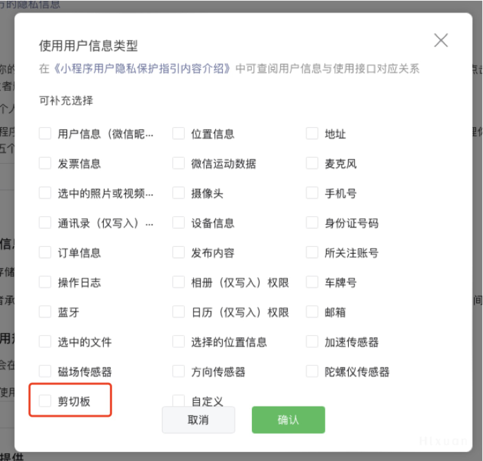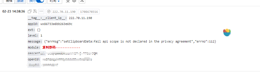 根据你提供截图上面的AppID,查看到该小程序没有在用户隐私保护指引里面声明【读取你的剪切板】,建议登录小程序后台声明该隐私类型,待审核通过后过一段时间再试试看。