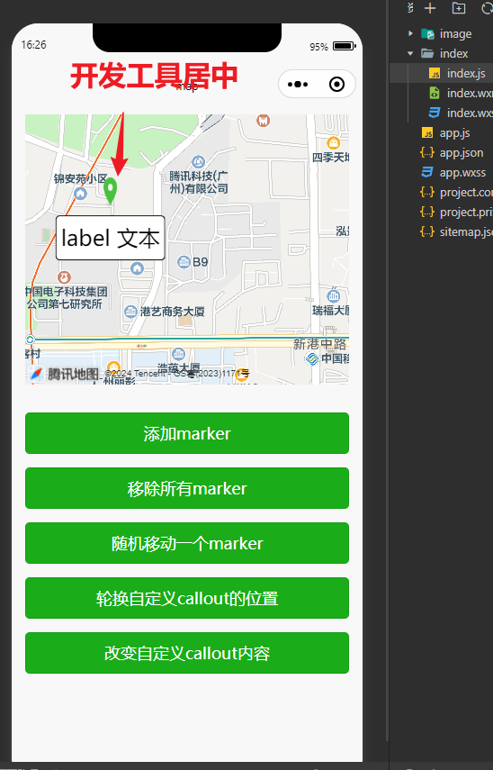 以真机为主,开发者工具有时候map组件的一些效果显示不出来,或者有误,你上面的代码片段我在开发者工具和ios17上预览都是居中的