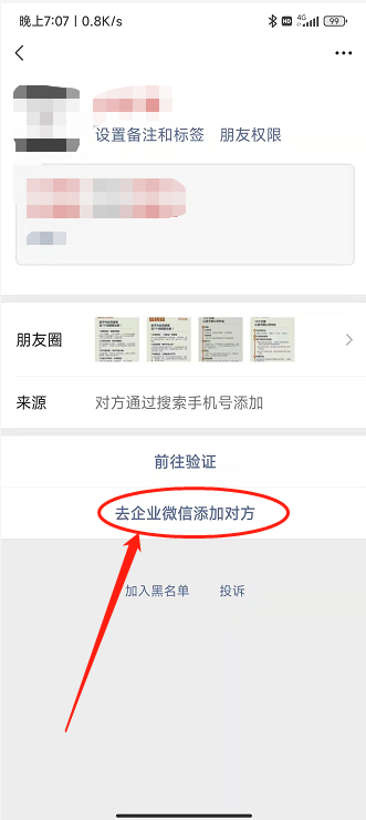 普通微信别人发送好友申请后,在验证界面可选择“去企业微信添加对方”,点选后来到企业微信界面但未弹出添加好友界面。刚换的新手机,之前没有这个问题。