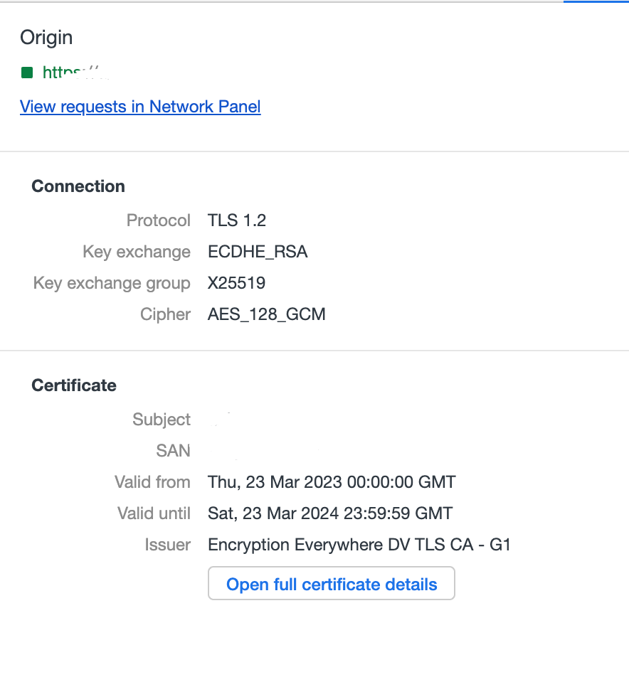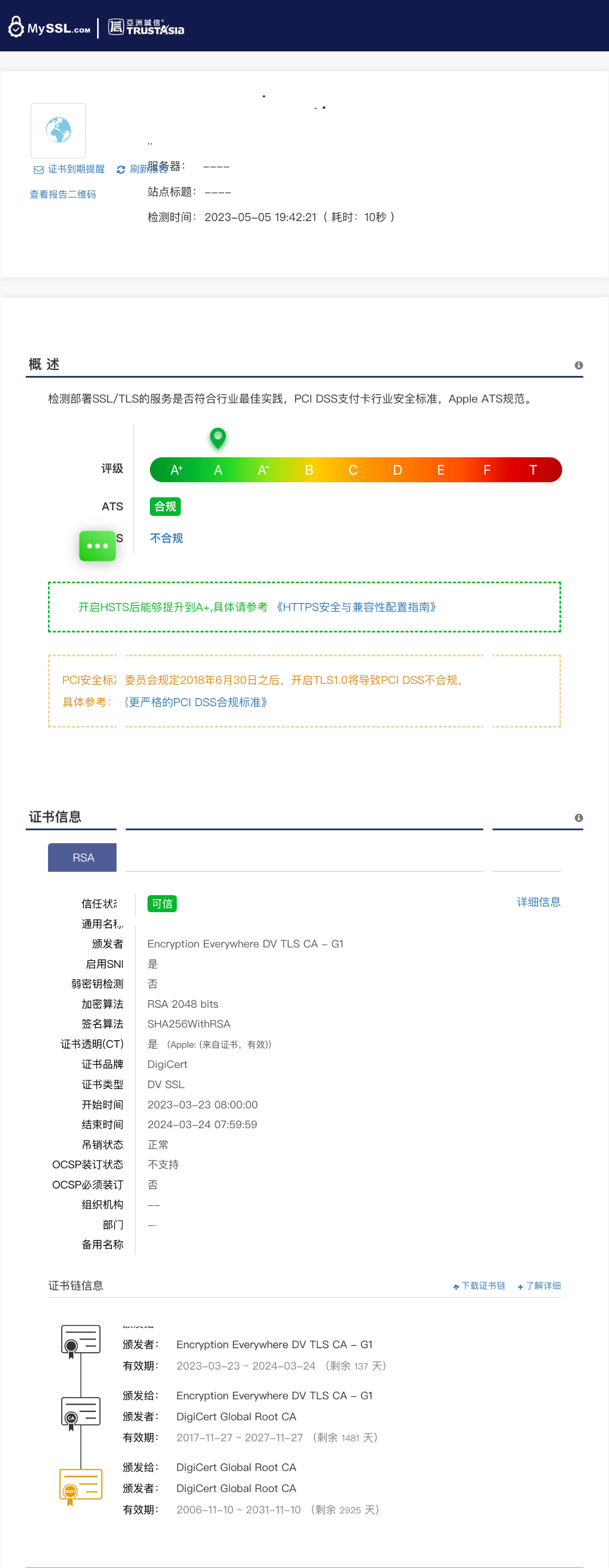 证书满足 App Transport Security (ATS) 的要求, TLS的版本也为 1.2