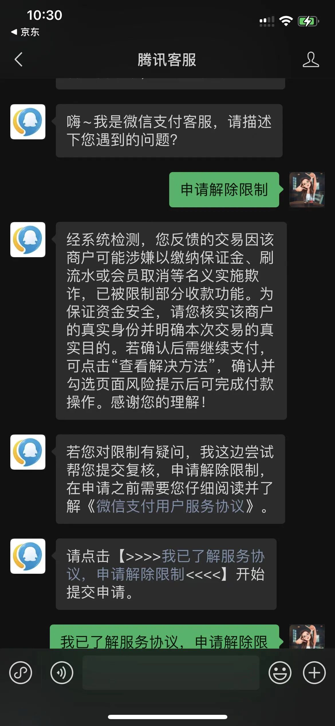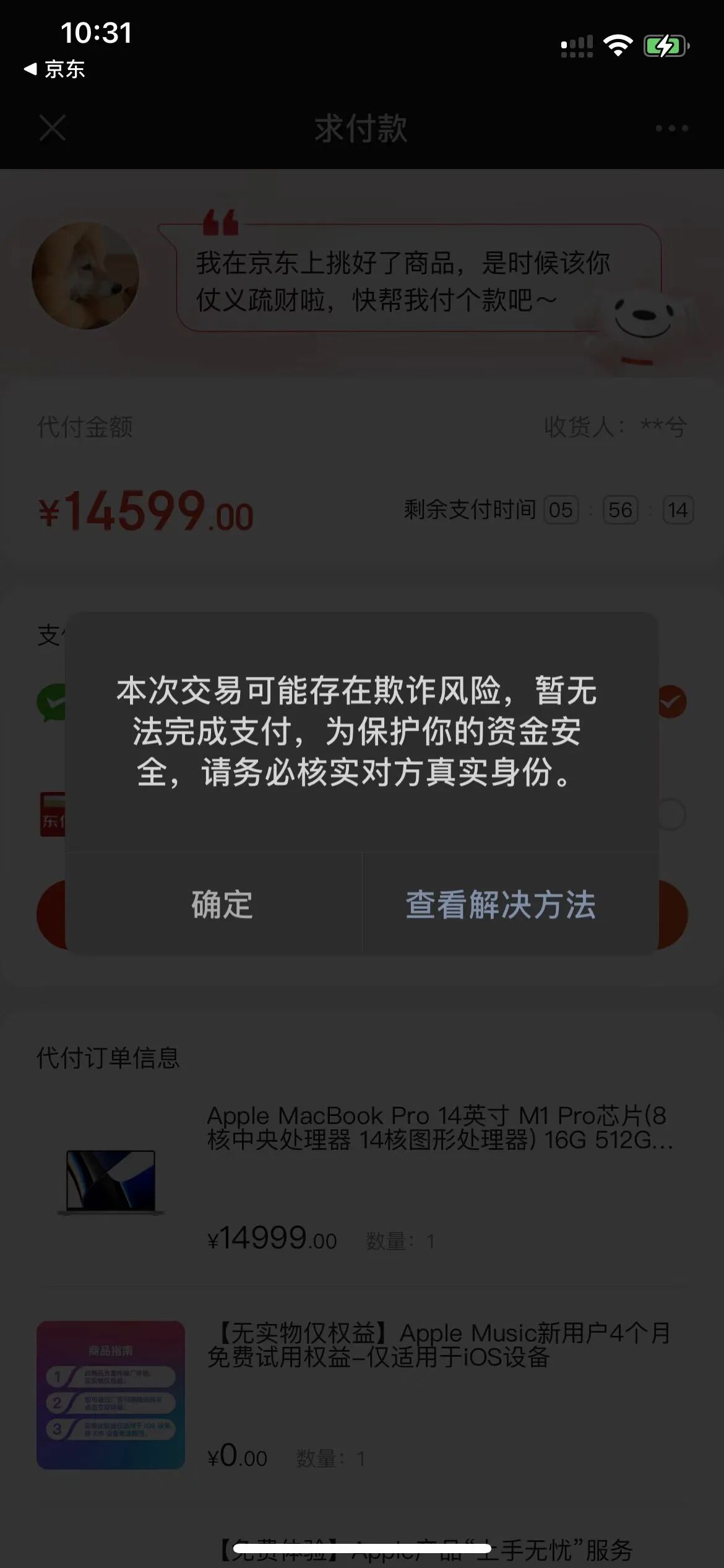 在微信代付京东订单的时候被限制付款了,让我人脸识别我识别通过了,但是也不行。