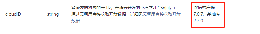 getPhoneNumber:function(e) {console.log("cloudID-云函数获取手机号", e.detail)let id=e.detail.cloudIDwx.cloud.callFunction({name:'cloudID',data: {weRunData: wx.cloud.CloudID(id),// 这个 id 值到云函数端会被替换微信客户端要7.0.7