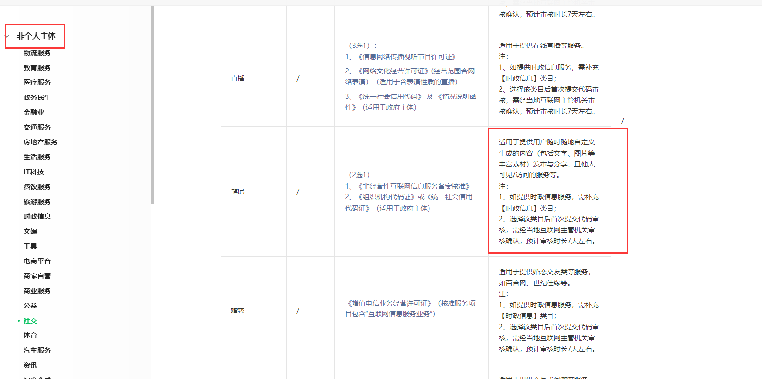1.小程序首页所有板块涉及用户自行生成内容(文字、图片、音/)的记录、分享,属社交-笔记范畴,为个人主体小程序未开放类目,建议申请企业主体小程序;