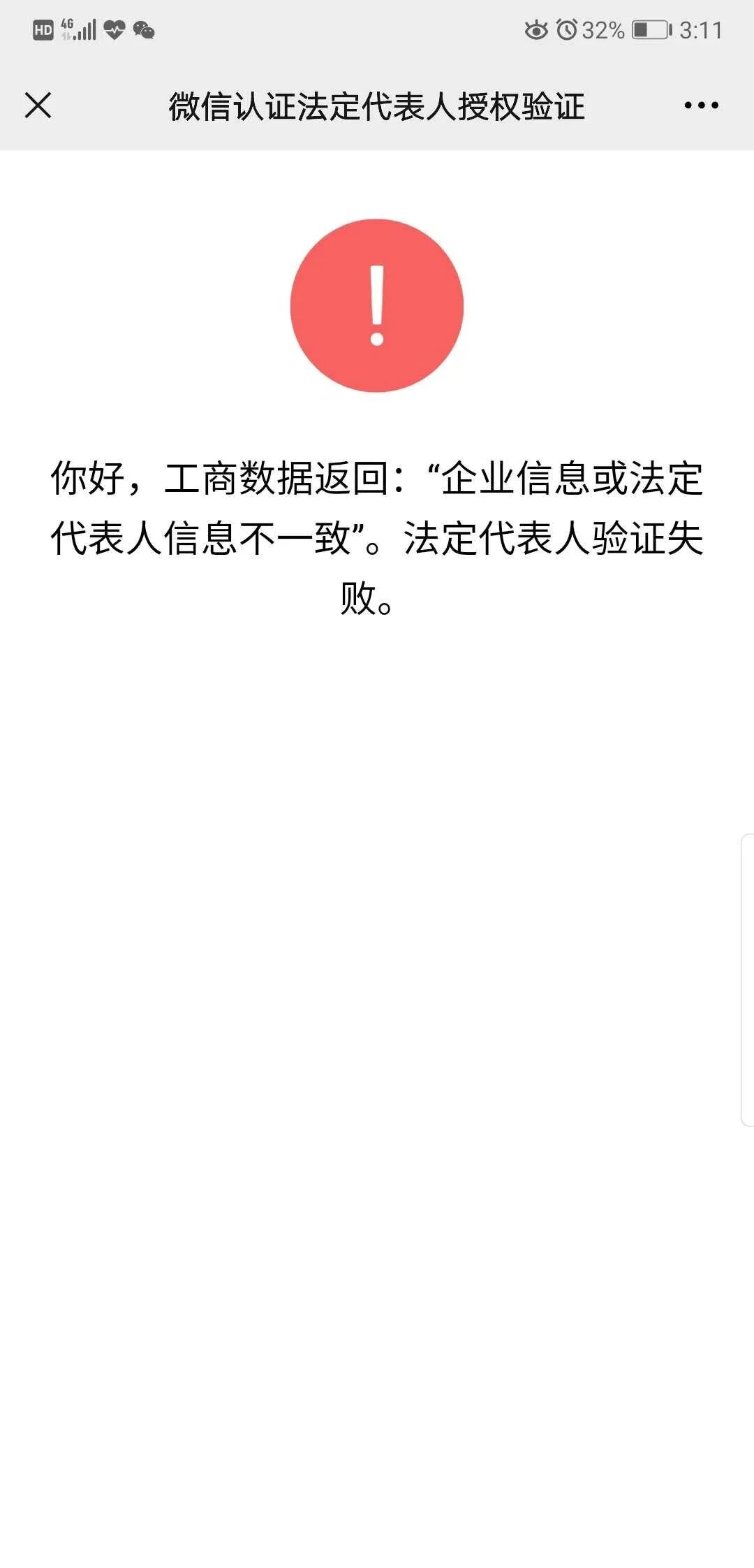 工商数据返回:企业信息或法定代表人信息不一致。法定代表人验证失败。