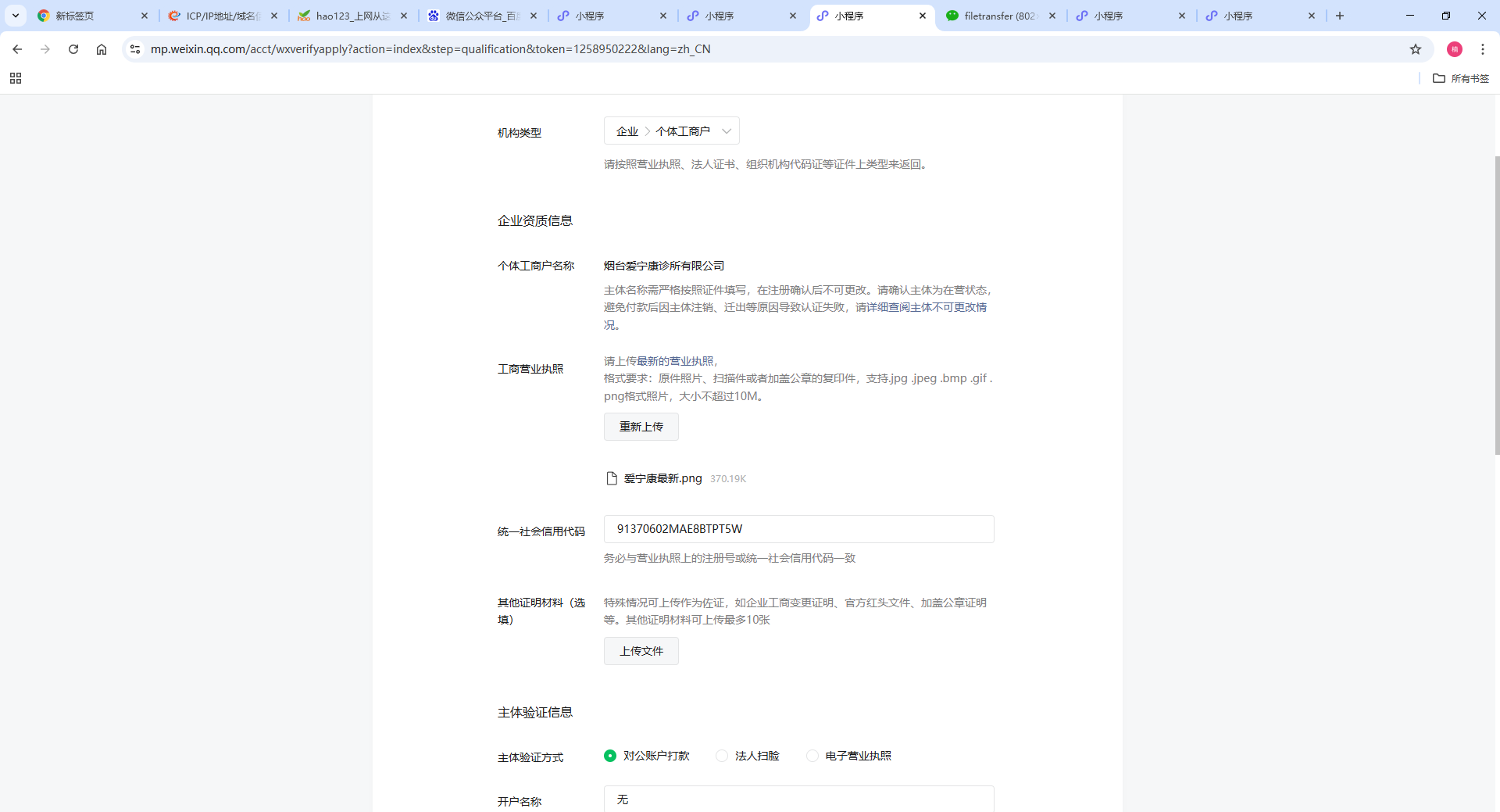 小程序换了主体,重新认证,认证信息和主体信一样还是提示认证类型与主体工商登记类型不一致?