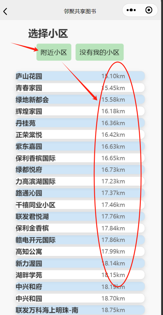我时一个图书共享类小程序,需要匹配用户附近的小区图书资源