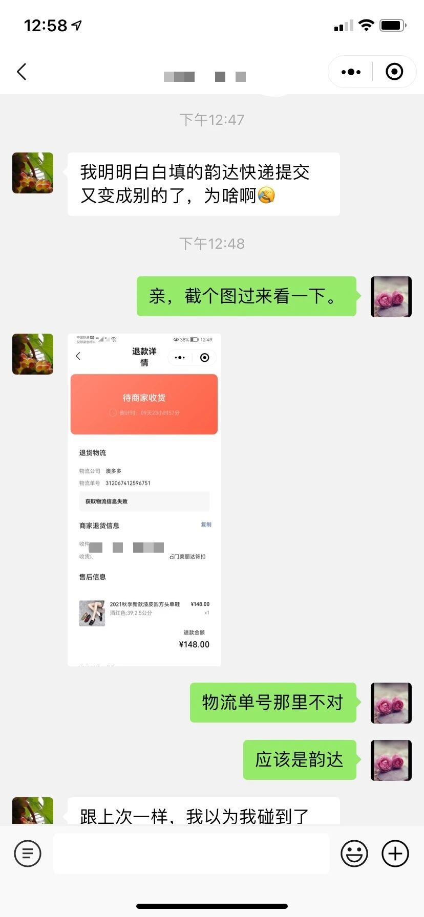 附带有聊天记录,之前有有一位买家遇到相同情况没多想,这次这位买家反映以后发现应该是系统问题,没有物流信息的话保险公司就无法正确赔付运费险了,对买家商家都挺伤的