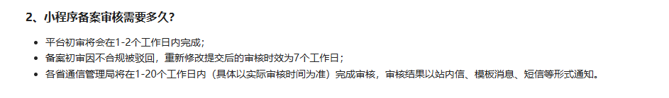 你好,该小程序APPID:wxdf39b84411d007cb 当前备案订单状态为等候管局审核中,各省通信管理局将在1-20个工作日内(具体以实际审核时间为准)完成审核,审核结果以站内信、模板消息、短信等形式通知。