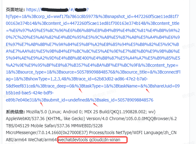 链接中&符号全部变成了 &%3B,导致我们页面获取相关参数报错,所有这种报错ua中都包含 wechatdevtools qcloudcdn-xinan。