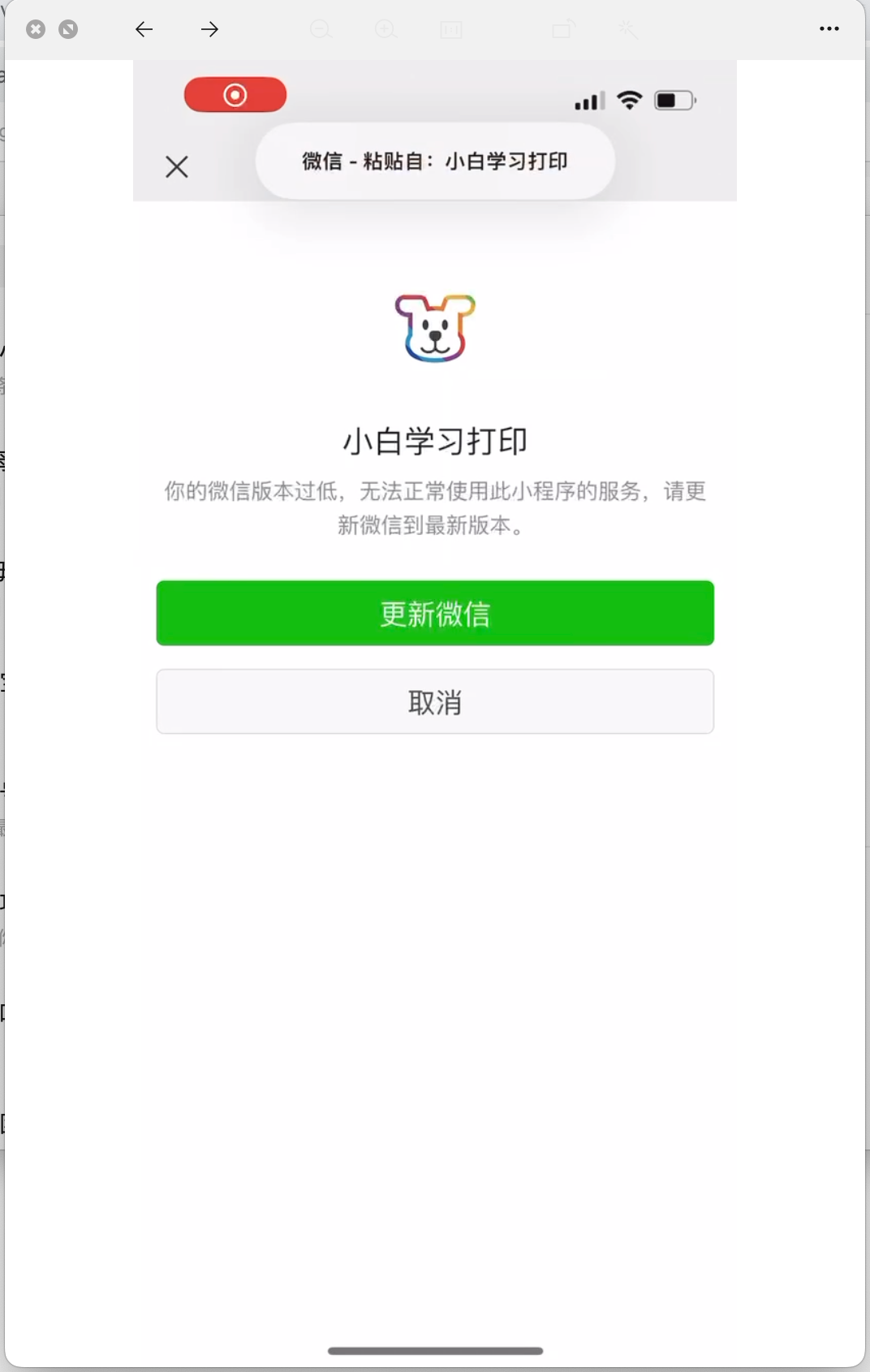微信开放平台设置的最低基础库版本是2.32.3,用户在app store已经升级到最新的版本8.0.42,但还是打不开微信小程序,提示“微信版本过低”