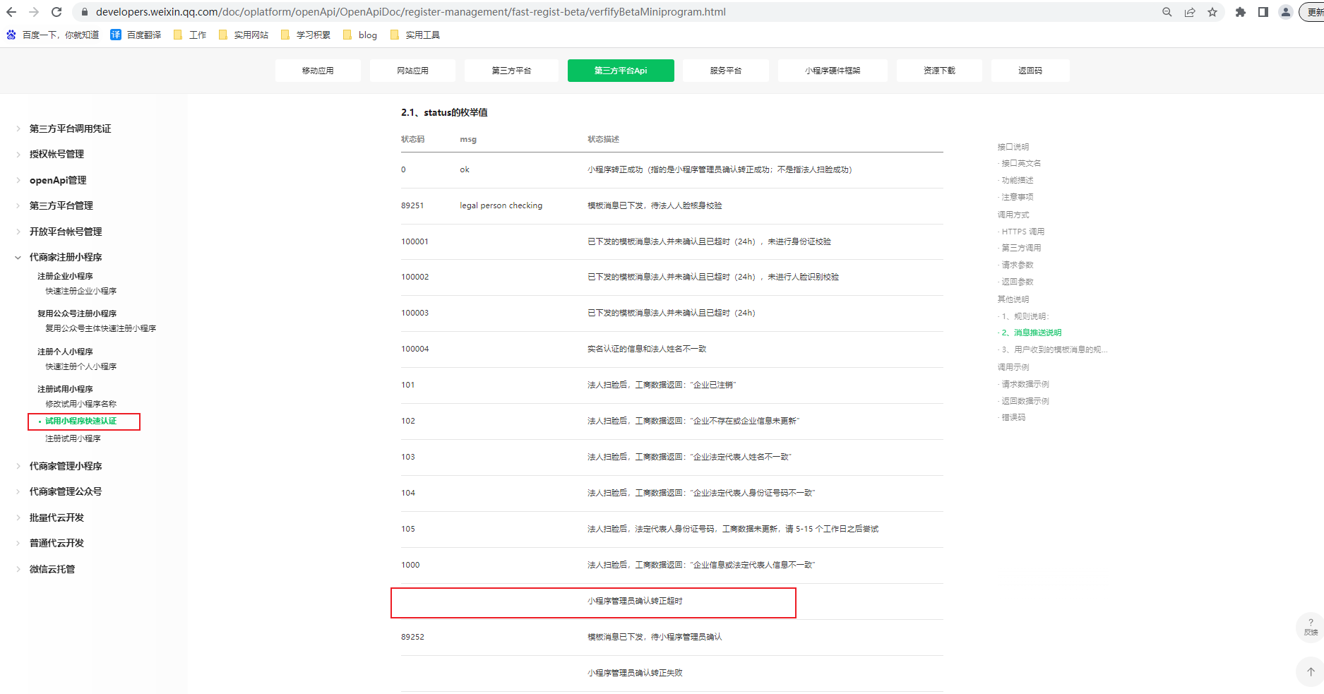 试用小程序转正过程中,法人已认证,到了待小程序管理员确认那一步(此步收到了消息推送),但是超过24小时管理员未确认没有收到消息推送?这边没有收到消息没法改状态,麻烦官方查一下什么问题