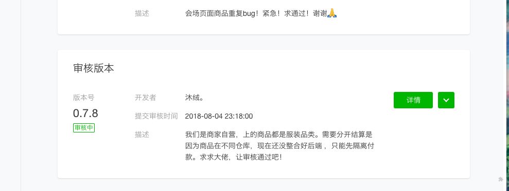 审核的时候提交的就是商家自营模式,而且审核的时候说我们需要分开结算,我已经解释了原因了,还是不给通过,之前一直这样审核也没有问题,就是最近老是不通过。我们有功能要上线,希望尽快可以给通过!!!感激不尽,给个理由吧。