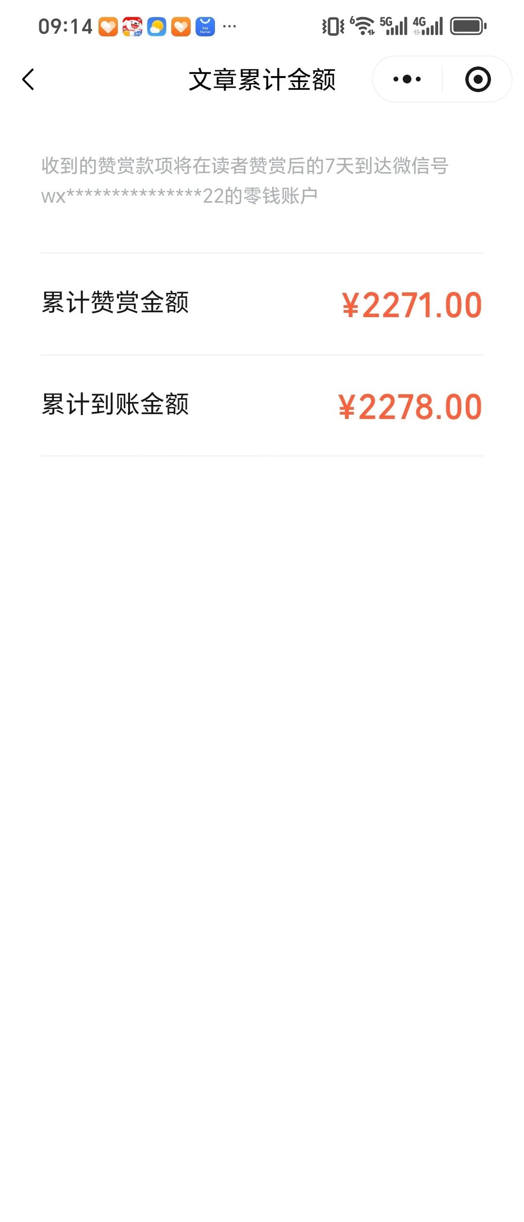 赞赏账户小程序从3.17左右发现已经数天不更新新增的赞赏金额,只收到赞赏提示就是看不到金额统计,不知道钱打在哪里了,数据统计显示的还有问题,里面一篇文章累计到账的金额比累计打赏收到的金额还能多